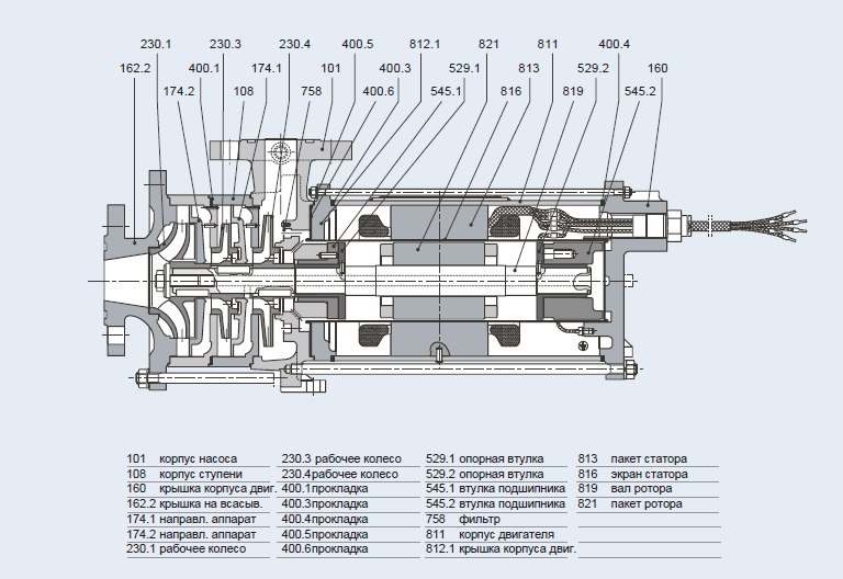 - Напор (H max.) - 130 м.ж.ст. и более под заказ.